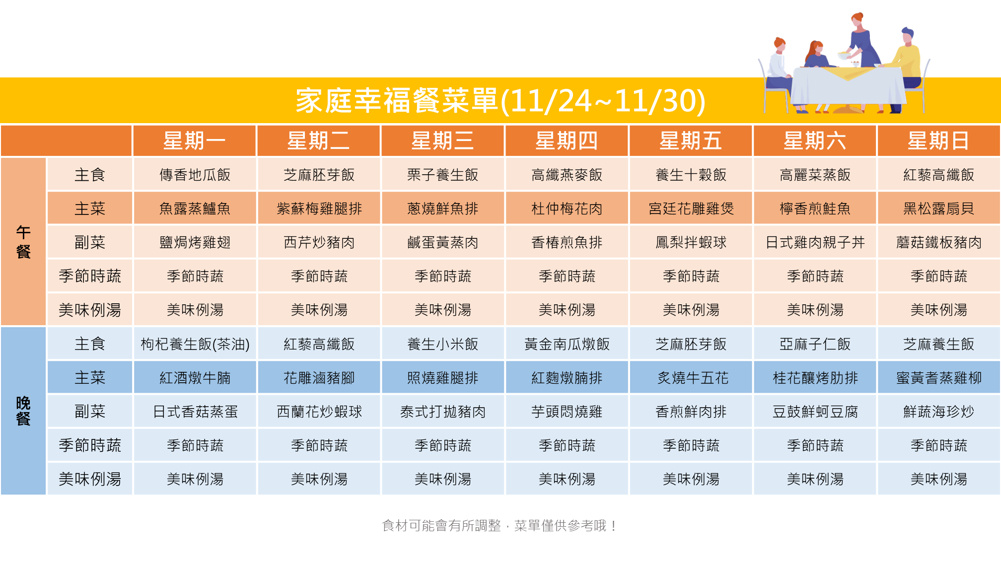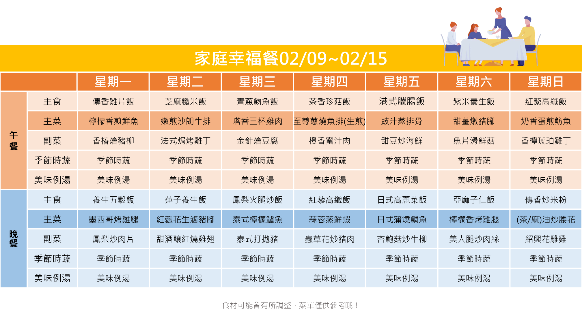 方便、美味、安心的家庭料理,用心陪伴全家的午晚餐時光。